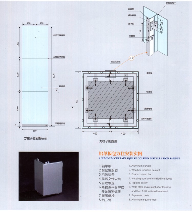 方形無(wú)縫包柱鋁單板特點(diǎn):